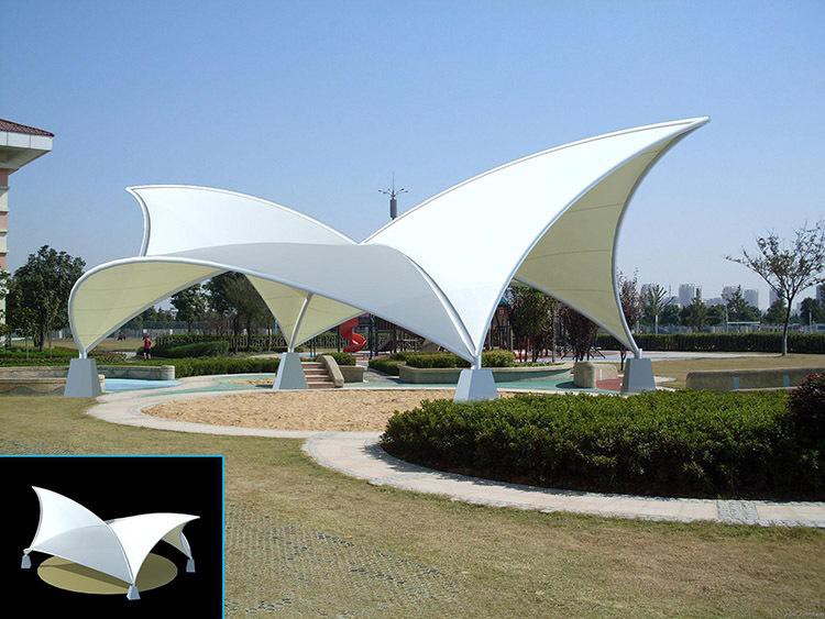 2、張力式膜結構:主要是利用簡單的支撐系統及膜素材自身的張力特性組成的膜結構。