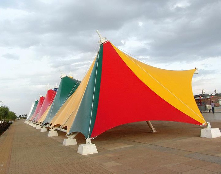 索膜結(jié)構(gòu),它是一種建筑與結(jié)構(gòu)結(jié)合的結(jié)構(gòu)體系.它是用高強度柔性薄膜材料與支撐體系相結(jié)合形成具有一定剛度的穩(wěn)定曲面,能承受一定外荷載的空間結(jié)構(gòu)形式.索膜結(jié)構(gòu)的清洗:用PVC清洗劑加入水中,建議用洗車用的噴水槍先將加清洗劑的水噴到膜上,再用軟刷刷一遍即可,也可以用長桿前端裹上軟布擦洗.